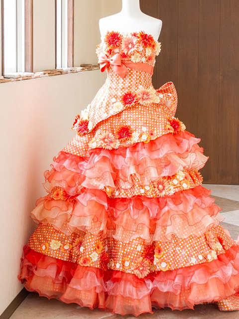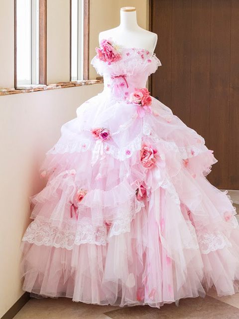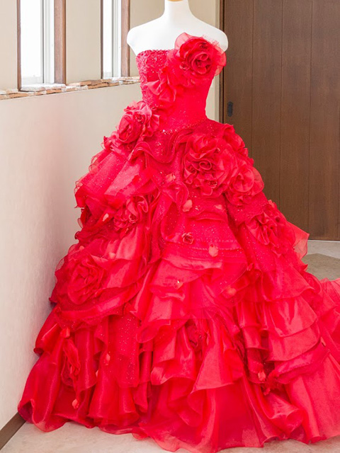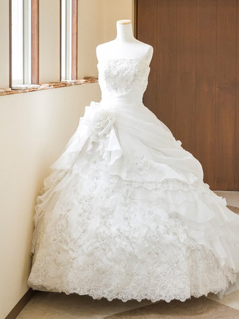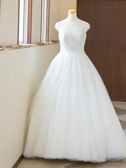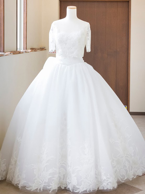 末広衣裳店でも1番人気の正統派デザイン ドレスのボリューム感 華やかで可愛らしい印象をもたせることができます
