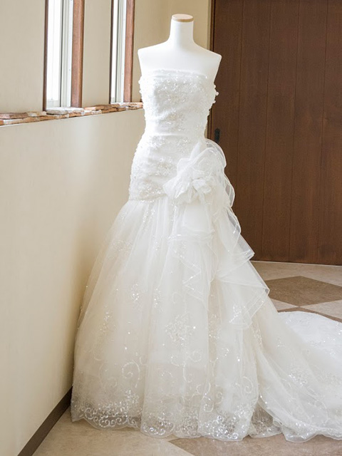 マーメイドの尾ビレのような 裾へむけて広がるデザイン 女性らしい曲線美を魅せます