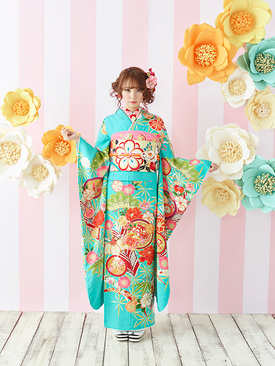 振袖 / 帯 / 長襦袢 / 帯締め / 帯揚げ / 伊達襟 / 肌着 / 前板 / 帯枕 / 腰ひも / コーリンベルト / 伊達〆 / 衿芯 / 仮紐 / ショール / 足袋 / 草履 / バッグ